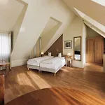 Looking onto the castle, some of the 36 rooms are appointed with a wooden floor. Also, they feature wood flooring.